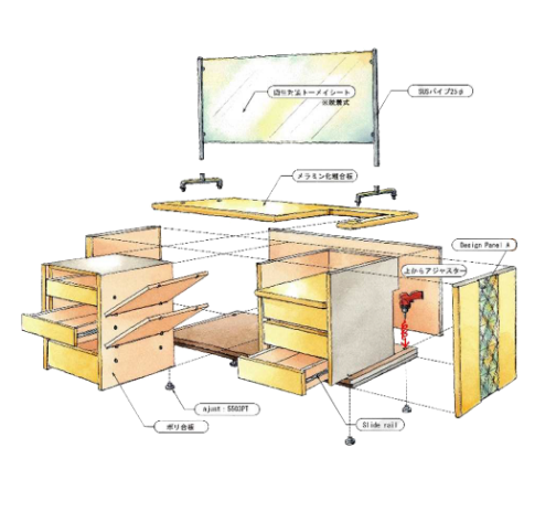 「設計・製作」、「製作・納品」、「製作のみ」など様々な状況でのご用命を頂いております。店舗什器のことなら弊社におまかせください。